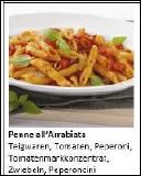 Wasser, Hartweizengriess, Eier, Weizenprotein, Rapsöl, Eiklarpulver, Speisesalz jodiert, Tomaten, Tomatenkonzentrat, Tomatensaft, Tomatenmarkkonzentrat, Zwiebeln, Zucker, Peperoncini, Kräuter, Gewürze, Verdickungsmittel Xanthan. Kann Spuren von Soja enthalten.