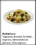 Bandnudeln mit Gemüse und 13% mariniertem, gebratenem Hähnchenbrustfleisch